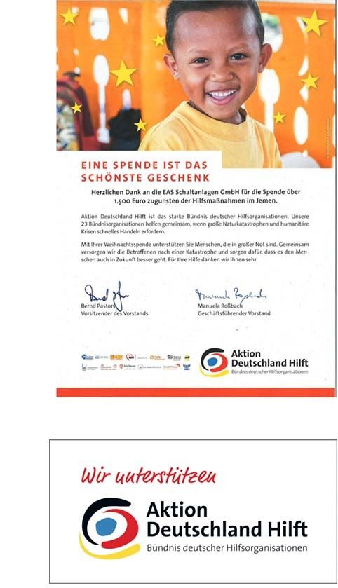 EAS unterstützt das Bündnis Aktion Deutschland Hilft